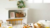 かぼちゃともみじリーフがあるだけでかなり華やかですよね。テーブルの木目もいい感じです。